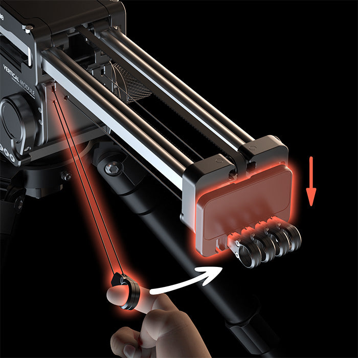 The module offers 5 individual tension wires to accommodate different equipment weight, easily adjustable by attaching the necessary number of wires to SliderPLUS's side dock.