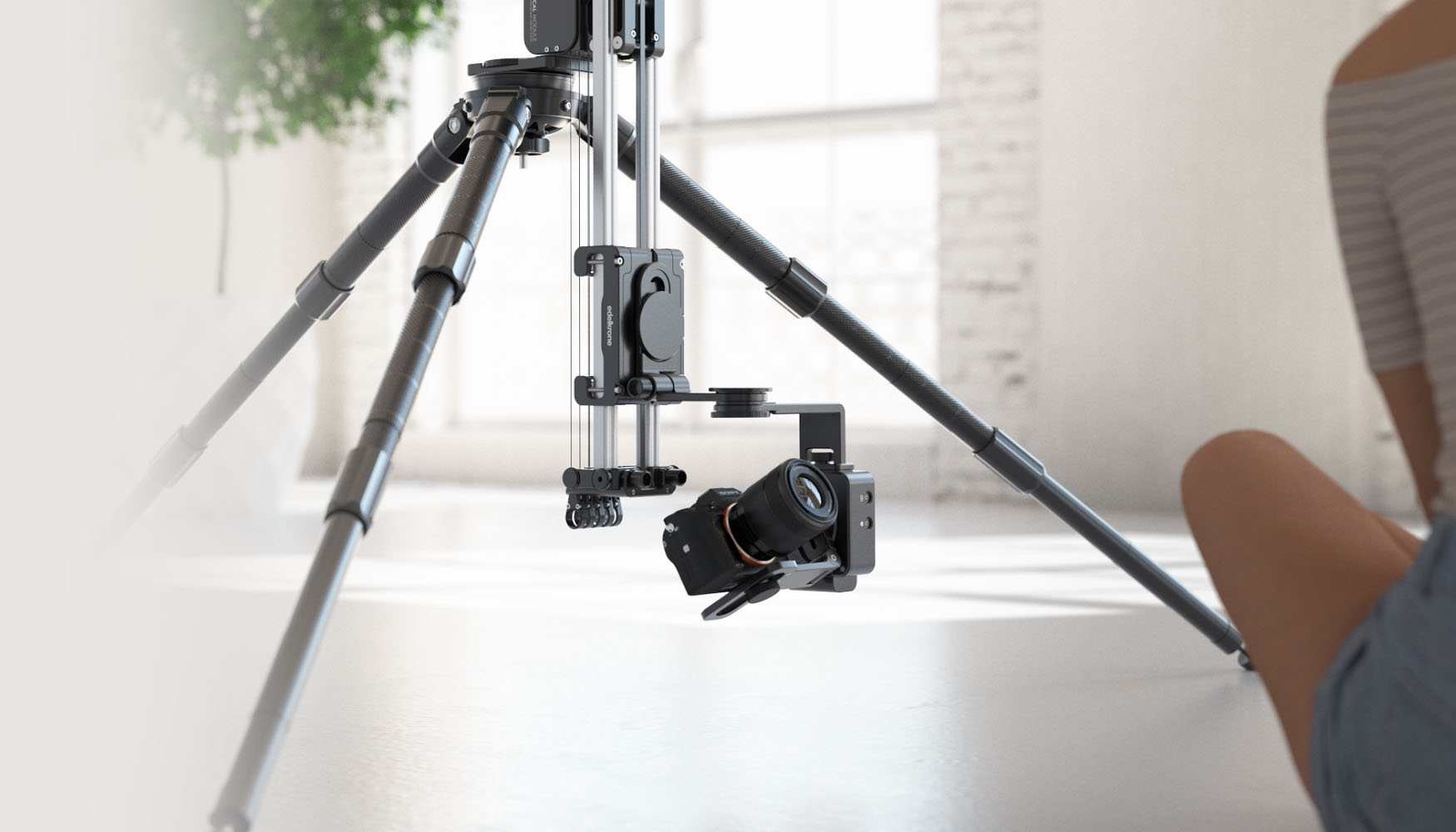The idea of using a tension wire to achieve vertical motion that is quiet, fast, power-efficient, and portable is a patented and uniquely edelkrone approach.